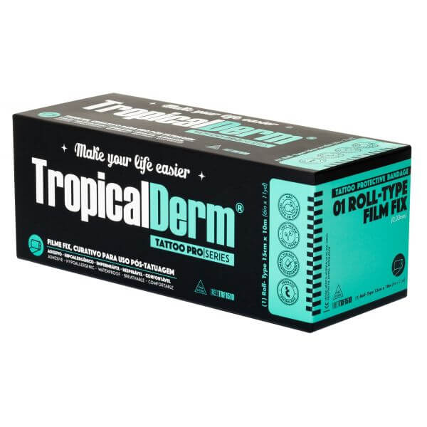 TropicalDerm® Filme FIX® Rolo Adesivo Tattoo Pro Series 15cm x 10m